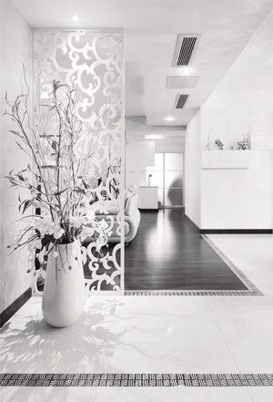 在色彩的处理上,要注意与相邻空间和谐统一,不管是暖色调还是冷色调玄关,都可适当地加一些饰物,小的点缀性的饰品更能突出玄关的趣味和生动感,但这种饰品不宜过多,要遵守少而精的原则。如果是现代风格的装修,可以买一个纯白烤漆或有一定金属质感的柜子,柜面上摆放鲜花、装饰画等。如果装饰风格很简洁,那么一款原木鞋柜、柜上一个有着小鱼游弋其中的小鱼缸和一盆小的观叶植物,一块素雅的小地毯,便能让身心得到舒缓与宁静。