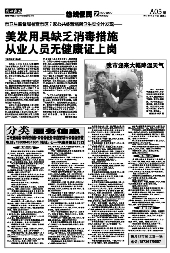 市卫生监督局检查市区7家公共经营场所卫生安全时发现——