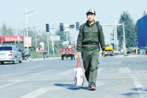 本报讯 10月15日14时许,30岁的山东小伙李德玉背着一个大包,手提一只手提袋,满身风尘地出现在周口市区建设大道上……