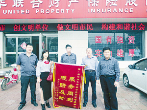 本报讯10月8日上午11时许,中华保险周口中支公司营业大厅门前,锣鼓喧天,鞭炮齐鸣。来自新乡市鑫宇大件有限公司经理刘文杰先生偕夫人登门,呈一面印有“服务周到 理赔及时”的大红锦旗,表达对中华保险周口中支客服部优质服务的感谢。
