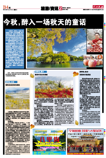 秋日的西藏,天高云淡,空气怡人。十月的蓝天,霞光如火,十月的大地,一派颂歌……其中首府拉萨,有着藏族文化无可比拟的文化瑰宝,是所有热爱青藏高原的旅游者所不能错过的地方,就像屹立在山冈之上是布达拉宫,秋天的夕阳中尽显巍峨。而地处西藏东南的林芝,则是闻名遐迩的“西藏的江南”,还有野性神秘的墨脱国家级自然保护区以及被称为世界第一大峡谷的雅鲁藏布江大峡谷,随处是一派神奇的自然景观。这里也是门巴族、珞巴族等少数民族的聚居地,这些民族至今保持着古老的生活习俗和宗教信仰,和奇特的自然风景一起勾勒出这世界仅存的绝少为人类所涉足的净土之一。