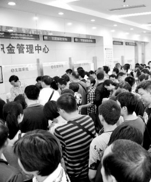 “公积金也闹起了‘钱荒’?”类似的焦虑情绪引发了连锁反应。8月底,济南引发“挤提”风潮,最多时一天约有1500人涌向济南公积金大厅(如图)。