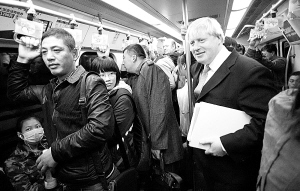 本报综合消息 在一座难求的北京地铁1号线上,谁会对一个空位说“不”呢?伦敦市长鲍里斯·约翰逊是其中一个。鲍里斯在英国政坛以率性随和出名。10月15日,携经贸团来中国访问的鲍里斯,来到地铁西单站,亲自体验了一下地铁1号线。