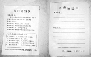 滁州三中一名学生向记者提供的节目通知单有两页,附页“观后感”有“家长点评”“学生填写”两项,并要求“填写后请注意保存,本周一交班主任统一收回”。