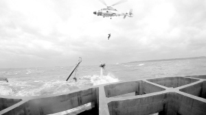 10月16日,韩国海警利用直升机在浦项沉船事故现场实施救援。