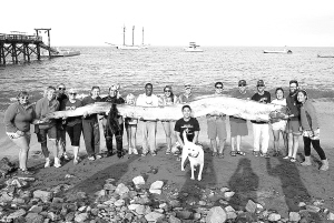 这条长达18英尺的皇带鱼,要16个大人才能举起来。卡塔利那岛海事研究所所长查斯说,看到这条鱼时,他感到十分惊讶,这是一生难见的重大发现。(宗欣)