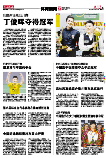 这也是丁俊晖个人生涯中取得的第八个排名赛冠军,他也是继五届世界冠军奥沙利文在2003年连续赢得欧洲公开赛和爱尔兰公开赛之后,首位连续拿下两个排名赛冠军的球员。他参加的下一个比赛是本月底在成都举行的国际锦标赛。