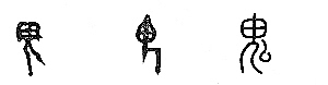 “鬼”,为会意字。甲骨文和金文的“鬼”字下面是个“人”字,上面则像长了一个怪异、可怕的脑袋,是人们想象中的似人非人的怪物。“鬼”是汉字部首之一,凡从“鬼”的字大多与鬼神有关。《说文·鬼部》:“鬼,人所归为鬼。”“归”为回归,即回归大地,指死亡。古人认为,人死了以后灵魂可以离开形体继续存在,人的肉体归于大地,灵魂就变成了“鬼”。如鬼怪、鬼魂、鬼神。《礼记·祭义》中对于“鬼”的解释同样直白:“众生必死,死必归土,此之谓鬼。”在现代出版的《辞海》中,“鬼”的条目下共有六点:其中第一点与《说文》最为接近:迷信者以为人死后精灵不灭,称之为鬼。《左传·宣公四年》:“鬼犹求食,若敖氏之鬼不其馁而!”在中国,常以天神、地祇、人鬼并称。《道藏·女青鬼律》载有许多鬼名。鬼一般被认为不登仙境,本性邪恶,对之应采取辟邪驱除等措施。