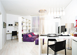 不规则的开放式小客厅,不妨用现成的沙发来分隔生活区域,搭配一款简易的隔断或书架,立即变身出一个休闲区,在这里上网或者阅读,与沙发区形成互动,工作休闲两不误。