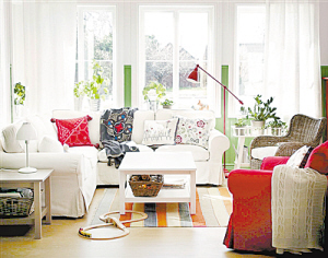 借鉴:沙发旁摆上几盆青翠的绿植,让小客厅更有生机活力。