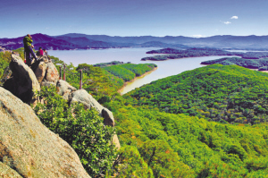 从山顶俯瞰松花湖的一角