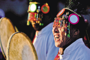 松花湖畔坝东广场,神秘的萨满风情,满族祭师祭江仪式