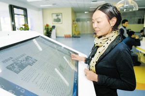 当日,宁夏图书馆举办主题为“网络书香·数字阅读”的数字图书馆推广活动。宁夏图书馆数字图书馆自今年6月启动以来,已经有3万多人注册,数字图书馆资源总量为30TB。新华社记者 李然 摄