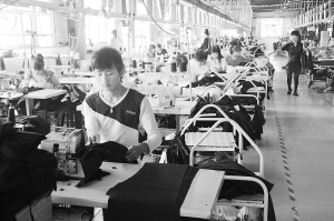 采访组一行到孙店镇后,首先被这里的服装工业园吸引。一个乡镇还有服装工业园?带着疑问,在该镇镇政府工作人员崔建平的陪同下,采访组一行来到了北极星服装有限公司。记者在服装生产车间看到,几百台缝纫机不停地运转,裁剪、缝制、整烫、成衣检验、包装入库……一切都井然有序。