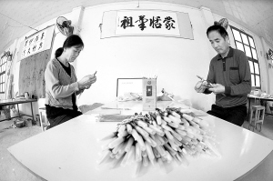 在该镇镇政府工作人员的带领下,记者还在孙店镇汝阳刘村见到了毛笔加工的“领头羊”刘四平。今年51岁的刘四平小时患有小儿麻痹症,行走不方便。但他身残志坚,创办了毛笔加工厂。如今,在刘四平的精心打理下,他的毛笔厂已成为河南省残疾人扶贫基地。