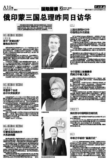 俄印蒙三国总理昨同日访华