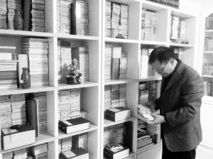 当日中午,记者在张伟俊家的书房里看到,整整一面墙的书架里摆放的全是连环画(如图),有《三国演义》《西游记》《水浒传》《杨家将》《铁道游击队》《红灯记》……俨然一个微缩的“连环画图书馆”。
