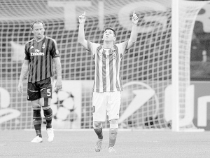 在H组的焦点大战中,AC米兰坐镇主场迎战巴萨。米兰前锋巴洛特利因腿伤未能上场,而伤愈复出不久的梅西出现在了巴萨的首发名单中。
