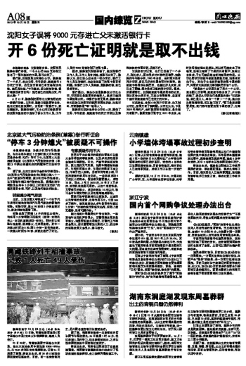 本报综合消息 父亲刚刚去世,沈阳市民陈静去银行存钱,一不小心把9000元存到父亲名下一张未激活的卡里,取不出来了。