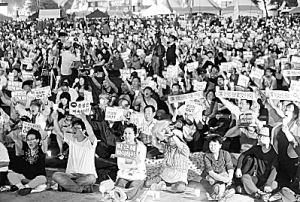 今年9月13日,韩国首尔,民众静坐抗议韩国国情院对大选的干预,要求对选举进行调查并要求总统朴槿惠辞职。(资料图片)