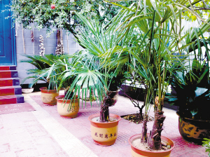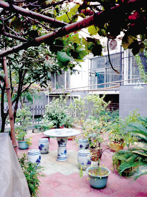 在周口市区文明中路的文明嘉苑小区,数栋住宅楼一楼全带小院,家家户户都种植了花、草、果、蔬,使得家属院四季常青。其中,刘女士向记者介绍的一处小院:盆景精致、硕果满枝,绿荫中还放置了一套仿青花瓷桌椅,把小院点缀得诗情画意(如图一)。