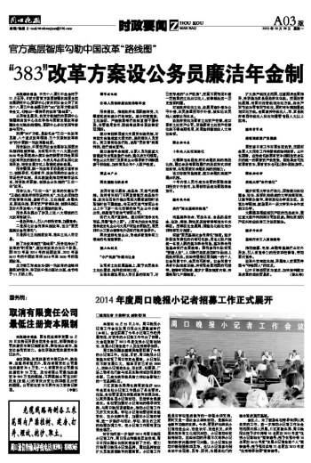 “383”改革方案设公务员廉洁年金制