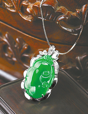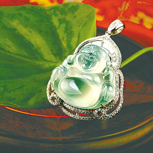 很多“80后”和“90后”的年轻人,则把翡翠戴出了潮味来,既有小家碧玉的轻盈,还紧跟时尚潮流。张玉红介绍,现在的翡翠挂件,工艺已经很先进,有的加上个18K金的瓜子扣,有的甚至镶上1颗至2颗钻石,翠钻合一,闪耀灵动。