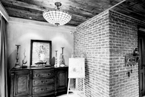 门厅的红砖墙和木头吊顶是两人共同设计的,成为家中最有特色的空间之一。玄关柜上的油画是老公亲手绘制,画框也是自己制作的。客厅的小条案,是桑吉卓玛的老公从网上买回很多英文木工书籍和全套工具,经过认真研究后,用时一个月制作出来的。因为这些用心的设计,桑吉卓玛取得了搜狐家居日记大赛的区域金奖。