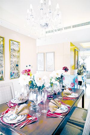 借鉴:餐桌上恬淡的色彩使花朵和水果的欢快气氛慢慢展现,布置上一些大朵的奶油色和大红色的鲜花和鲜红的餐布立刻会使餐桌氛围活力十足。