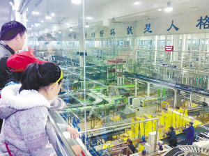 通过讲解员的认真讲解,小记者们对蒙牛有了初步了解。随后,大家跟随着讲解员来到二楼,正式参观整个牛奶的生产过程,从牛奶检验室、清洗车间,到杀菌车间、灌装车间,最后到包装车间,大家盯着那一条条铝带上自动传输着的整齐排列的成品,终于明白了蒙牛牛奶的整个“诞生”过程。