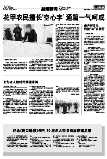 纪念《周口晚报》创刊10周年大型书画展征稿启事