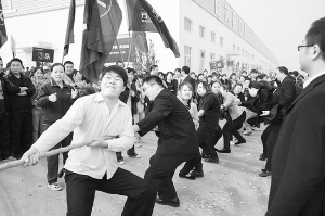 近日,河南万果园集团2013年秋季职工运动会在周家口食品公司院内举行,该集团1000多名职工同场竞技、角逐奖项。本届运动会比赛项目有拔河、绑腿竞走、火线传递、4×100米接力赛等。赛场上,职工们顽强拼搏,勇创佳绩,充分展示了团队协作、互帮互助的精神。记者 李寒 摄 线索提供 姚景霞
