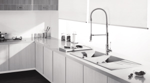 L形是指工作区沿墙作九十度双向展开成L形,比较节省空间。如果条件允许,则可设计成开放式,和餐台、吧台结合起来,增加了实用性,也展现时尚气息。若以纯白色墙面、原木色的橱柜并配搭一条色彩艳丽的瓷砖或马赛克,会提升厨房整体的质感与理性,对爱下厨的男士倒是个不错的选择。