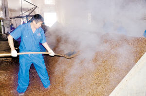 受厉行节约大环境的影响,我市白酒市场进入性价比时代,每瓶200元以下的白酒最受欢迎。本地酒利用自身优势,抢抓机遇,扩大市场占有率。图为河南四五酒业为备战春节加班生产。