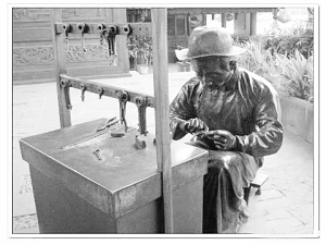 修锁匠很容易找,沈丘县城几个市场上都有修锁匠的摊位。但是谁的修锁水平较高,就看生意的好坏了——技艺高的修锁匠,回头客多,生意也比较好。前不久记者慕名采访了做了40多年修锁、配钥匙生意的老艺人毕庆才,他今年已经70多岁了,依然固守在闹市的一角,静静地为他人修锁、配钥匙。