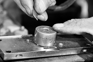 毕庆才说,他最初跟随师傅学习时,师傅并不是手把手地教,而是让自己在一旁看,只有夜晚才有机会弄几把破锁拆拆卸卸,一点一滴地掌握修锁技艺,失败了多少次是数也数不清。功夫不负有心人,他的修锁技术异常精湛,加上服务态度好,时间一长,他练就的绝活闻名遐迩。后来国家政策放宽了,允许个体户有偿服务,他的经济收入也大大增加了,从此一家人的生活有了保障。