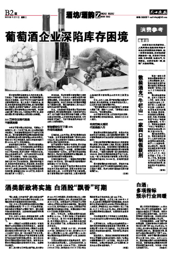 业内专家告诉记者,从目前的市场状况看,国内葡萄酒已经快跌到谷底,库存压力之大令人堪忧。