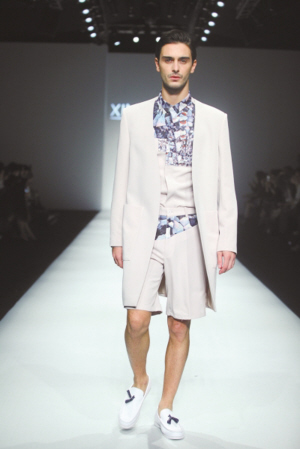 毕业于伦敦时装学院的上海新锐设计师胡馨予携其同名男装设计师品牌XINYUHU首次亮相上海时装周,呈现了一场充满几何立体主义的男装秀。本季主打简洁内敛的英伦风绅士男装。其2014年春夏季系列的灵感来源于抽象派大师毕加索在“分析立体主义”时期的绘画,结合人体骨骼线条,通过分解形象和舍弃色彩的极端抽象变形,打造一种似乎由层层交叠的色块所形成的画面结构。将这种独特的表现手法运用于时装,该系列采用了大量的不规则几何图形拼接及不对称剪裁,在简单的色彩中呈现出线条与块面的交错感,时装仿佛跟随着模特的运动而泛起了层层涟漪,让观者的视线在这些涟漪中游动,在模棱两可和实际存在之间感受一种匀称和谐之美。作为一名男装品牌的女设计师,胡馨予更喜欢用细节的变化创造出无限的发挥。