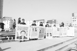 11月7日8时许,一辆车身贴满儿童照片的依维柯小客车停在周口市区五一广场边,7名身着红马夹的志愿者在广场旁布置了20块展板,和车身上一样,展板上也贴满了儿童的照片和简历(如图)。据介绍,这里共展示有320名孩子的照片(还有1700多名在画册中展示),这些孩子有的是走失、有的是被拐。7名志愿者是其中7个孩子的家长,他们撕心裂肺的呼唤在广场上空回荡,击痛了每一位过路人的心。