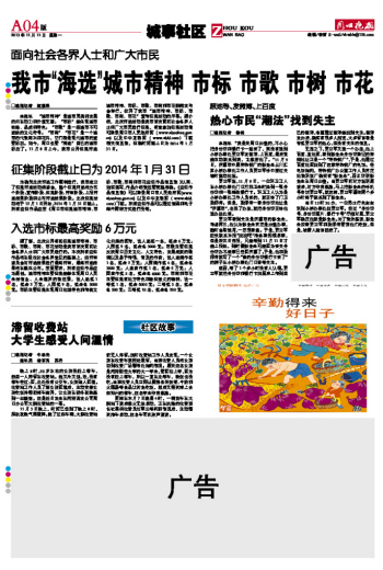 我市“海选”城市精神 市标 市歌 市树 市花