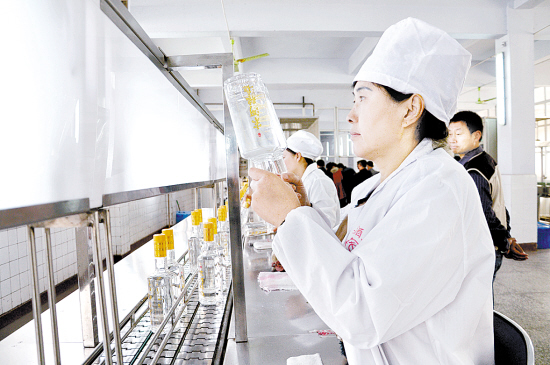 多年来,河南宋河酒业始终坚持以质量求生存、以品质促发展、以科技促进步的理念,坚守质量安全底线,做诚信人、产放心酒,走出了一条质量效益之路。图为该酒业工作人员在检测白酒质量。记者 李寒 摄