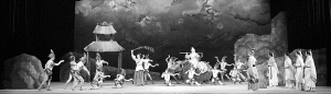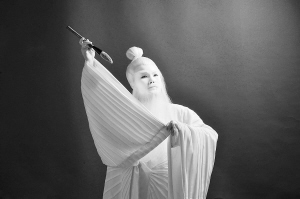 当日19时15分,容纳上千人的上海东方艺术中心歌剧厅内座无虚席,越调《老子》在这里隆重上演。演出刚一开始,舞美技术的独特运用,很快便把观众的思绪带到了春秋战国那个战乱、厚重的年代。白发白须白眉的老子骑着大青牛在舞台上一露面就赢得了满堂喝彩。“上善若水水性柔,避高就低行渠沟;随方就圆不择路,千曲百折不回头……”演出中,老子对“上善若水”的理解和优美的唱腔又一次引来观众掌声阵阵。