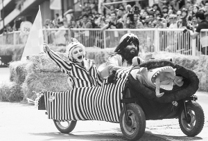 11月10日,一年一度的阿根廷“搞怪汽车”大赛(又名“肥皂箱车”大赛)在首都布宜诺斯艾利斯举行,36队选手驾驶着自制的无动力“搞怪汽车”为观众们献上了一场别开生面的赛车表演。参赛车辆由选手们手工制作,使用了废旧的木板、铁皮、纸箱和塑料等五花八门的材料。新华社发