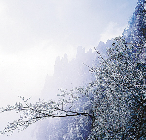 作为世界自然遗产,山川秀美的张家界汇集三千秀水八百奇峰,自然风光美丽异常。即使在万木凋零的冬天,这里依然景色如画。但身处武陵山区,冬天还是会有冰天雪地的时候,但临风的“玉树”、挺立的石峰,透过冰雪,仍然会展现出绿色,就像一个翡翠的世界。