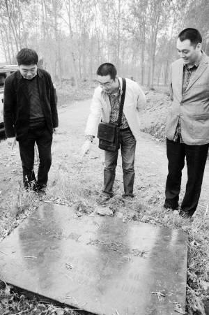 由于我们在凤凰岗遗址附近没有找到省级重点文物保护单位的石碑,不得不向固城乡政府寻求帮助。后在一名乡政府工作人员的指引下,我们在一个废弃酒厂的院前发现一座倒地、刻有“河南省重点文物保护单位”的石碑,它就像一位风烛残年的老者,静静地看护着这处遗址。