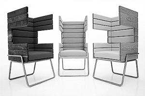 一把全包围注重隐私而又很有美感的椅子,它就像地板的拼接,打造了一个立方体的椅子,椅内柔软而又跳跃的颜色或许只有坐过的人才知道。“Gi Booth”是建筑美学的延伸,三种不同的颜色,三种不同的木材,有趣的色彩对比,从每一个角度来看,你可能都会发现令人惊讶的细节。
