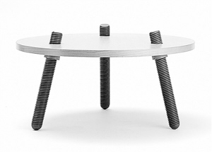 “avvitamenti”这组家具使用巨大的木质螺丝钉将各部分连接起来。设计师为了纪念自己的父亲——曾经的木匠和细木工匠,他曾利用自动夹紧螺丝来制作家具的方法影响了设计师contin的设计,这个系列的结构系统展示了一种可重复的模式,构想了多种多样的家庭使用模式,从桌子到台灯,都能通过木螺丝上下抬升。