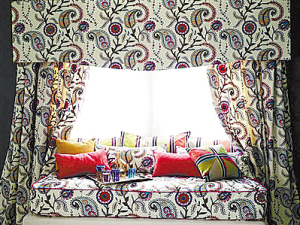 鲜花的特点是多彩、鲜艳,放在冬日的飘窗上,正好恰当,厚度超过10厘米的飘窗垫,再加上厚重的窗帘,都以同样的纹样装饰,让整个空间热闹非凡。再摆上同样多彩而晶莹的水杯、水壶,这个飘窗在冬天就闪亮起来。