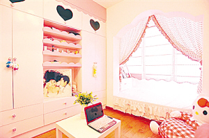 借鉴:单色主题房宜使用多层色彩,以避免单调感。再适当加入爱心、波点等符号元素和柔和的灯光即可。