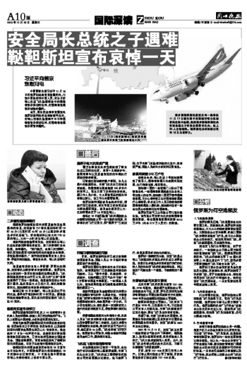 俄罗斯一新闻资讯台称,这架飞机是从喀山飞往莫斯科多莫杰多沃机场之后再返航,但是它在多莫杰多沃没有进行例行的机组人员的体检和飞机的机械故障检查,所以说这个可能也是一个隐患,不能排除这个原因。